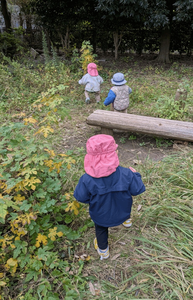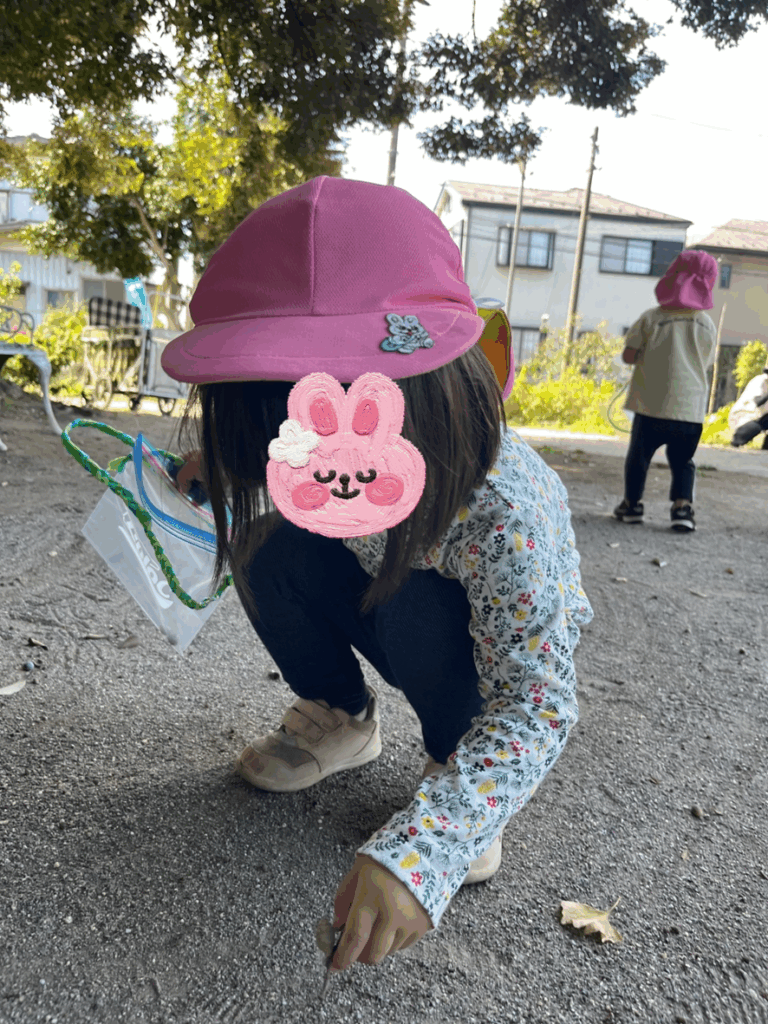 「いっぱいあったよ」「あっちにあるよー」と拾ったどんぐりを嬉しそうに見せてくれました!