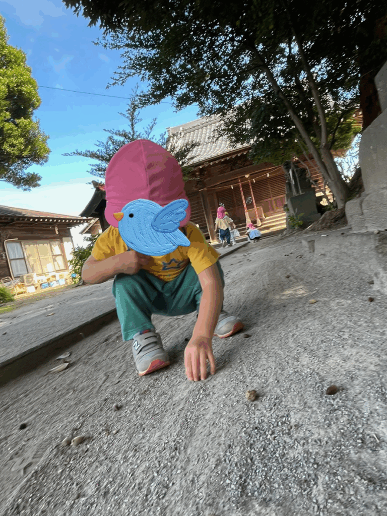 別の日には神明神社に行きました!神社にはどんぐりがたくさん落ちていて🍂
