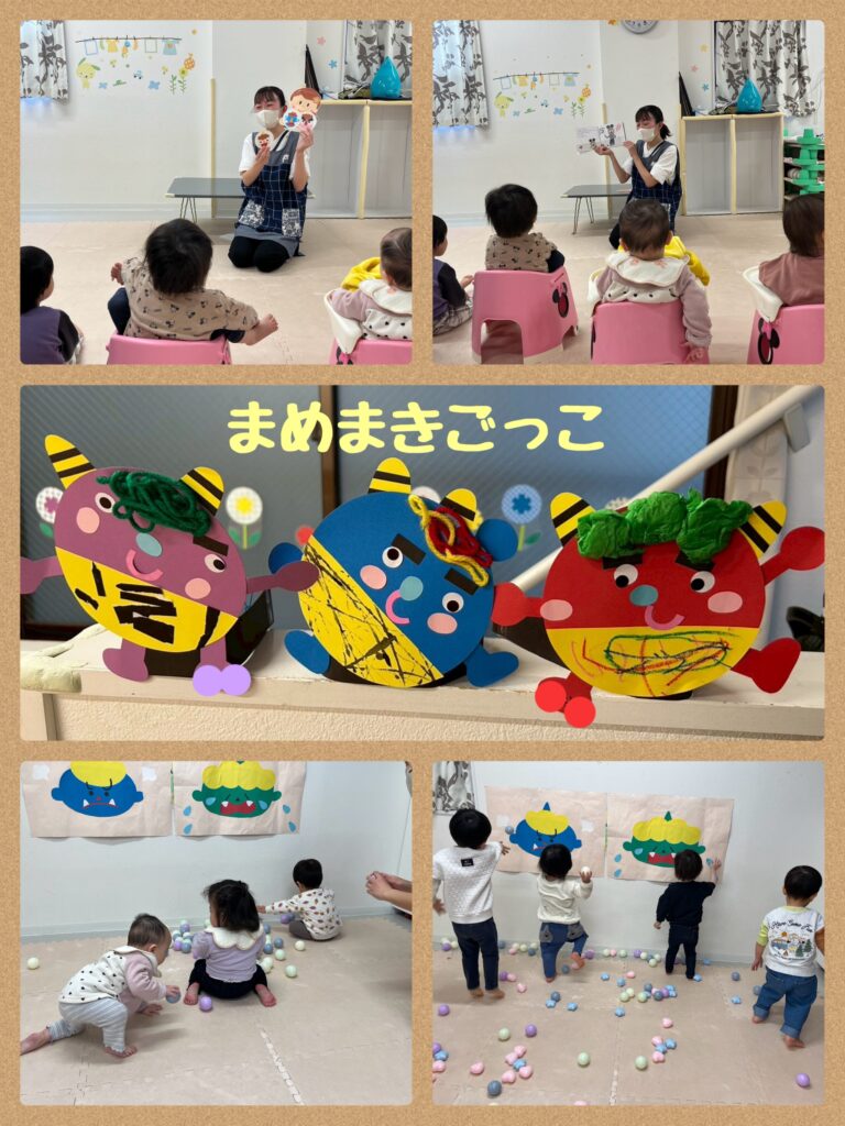 2月3日は節分。柳瀬川園では節分の豆まきごっこを