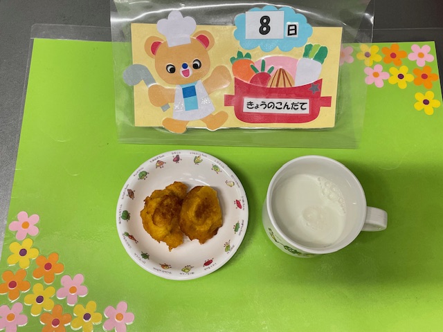 今日のおやつはドーナツだと聞いて喜んでいた2歳児さんが