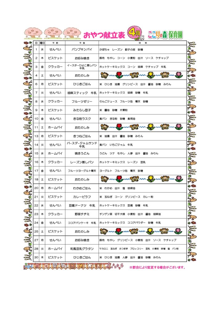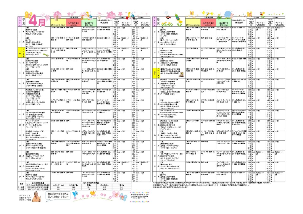 🌸🌸4月 食育だより&献立表🌸🌸