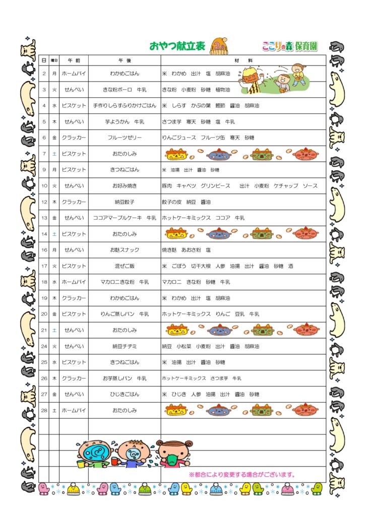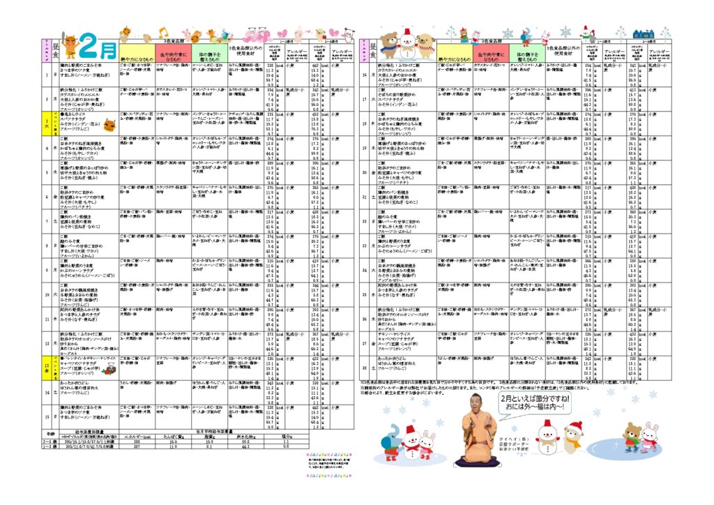 ※献立表に目を通していただく際に、献立名だけではなく必ず食材の確認もお願いします。
