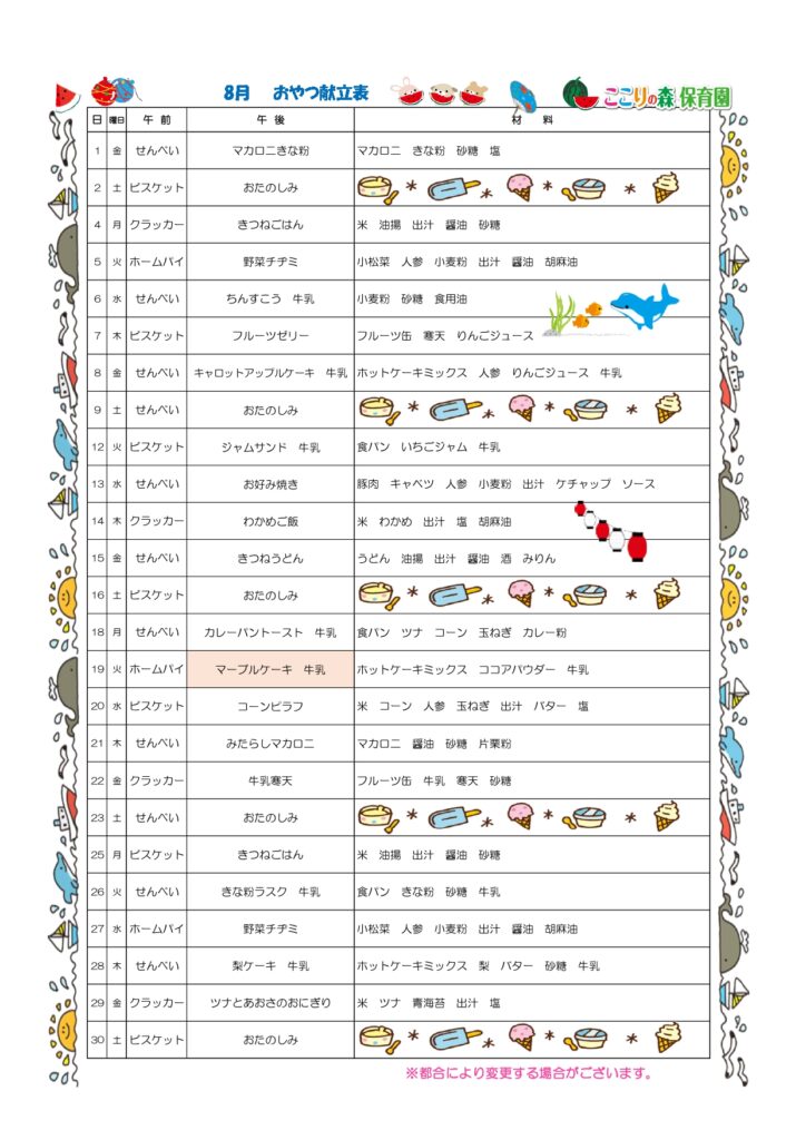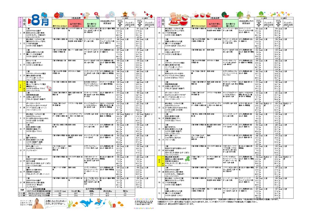 👻👻8月 食育だより&献立表👻👻