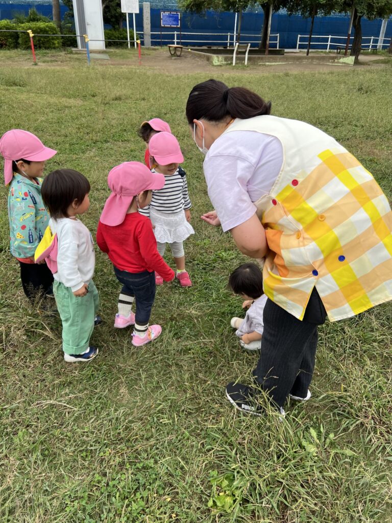 この日にはなんと実習生の先生がバッタを見つけて見せてくれました!
