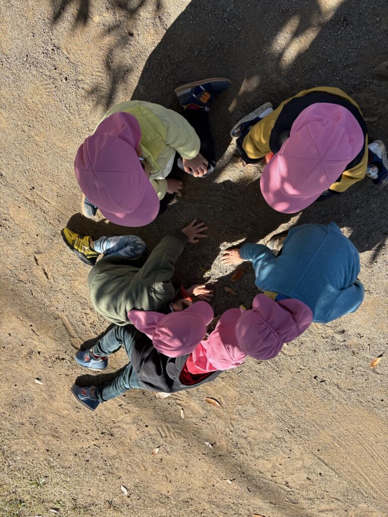 あおむしさんを見つけて興味津々に覗き込む姿が見られました!
