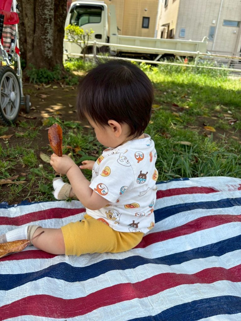 葉っぱやタンポポに触れ、アリを見つけると喜ぶ姿が可愛いです🌸!