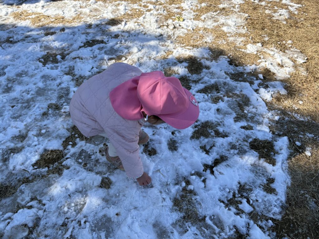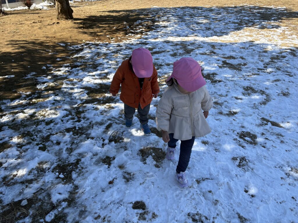 雪に触れてみたり、ザクザク音を立てて歩いたり感触を味わう姿がみられました