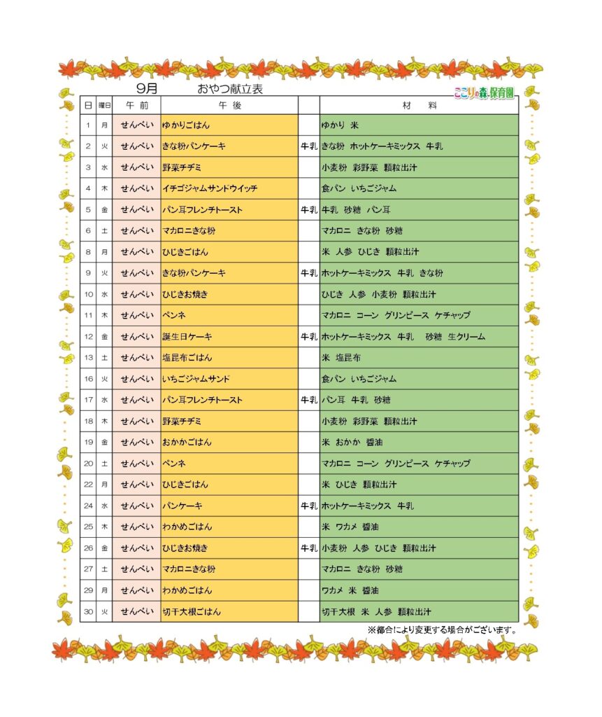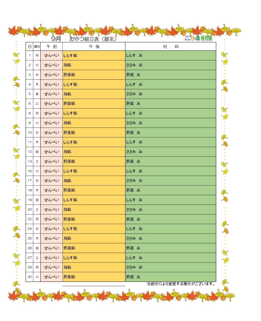 🍂9月の食育だより・献立🍂