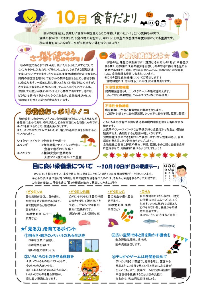 🎃10月の食育だより・献立🎃