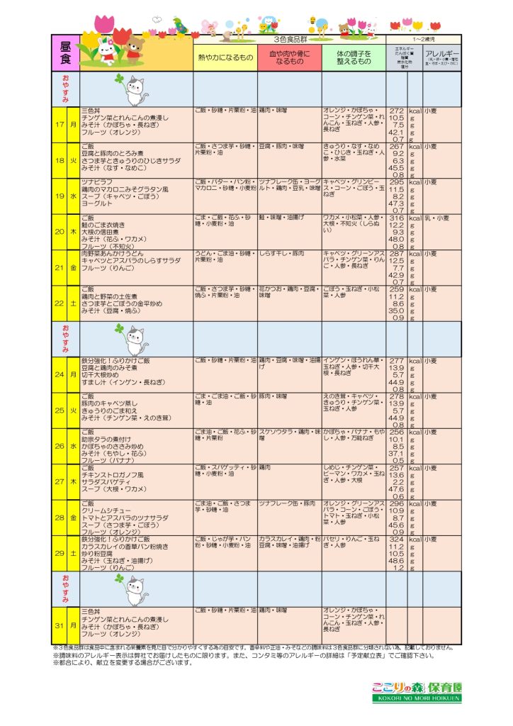 047-384-8788保育園の給食にも慣れてきたみんなは、苦手な物も1口挑戦してみたり、食べる意欲が湧いてきています。保育園の給食は、薄味ですが大人が食べてもとても美味しいです。みんな、心も体も大きくなりました。
