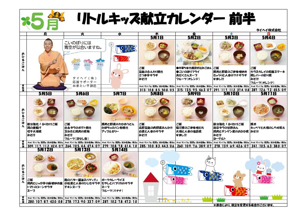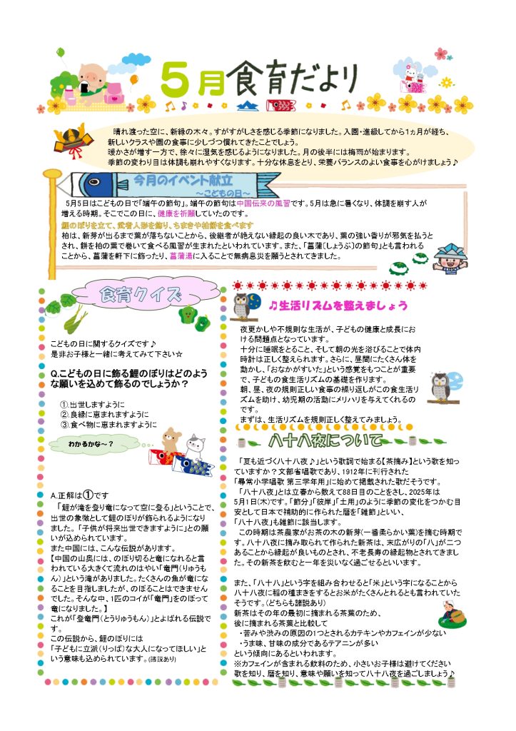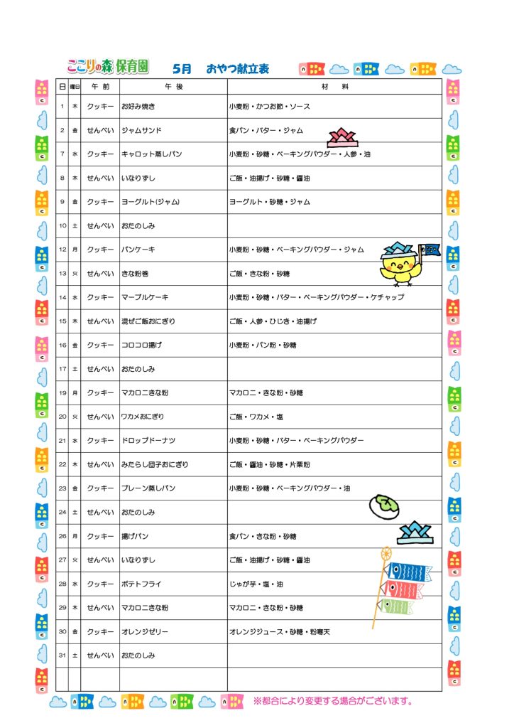 5月給食・おやつ献立など
