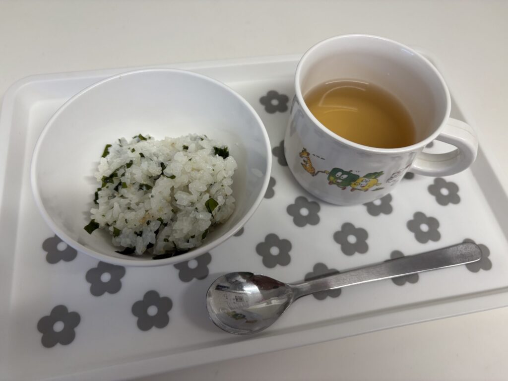🍏わかめごはん、麦茶
