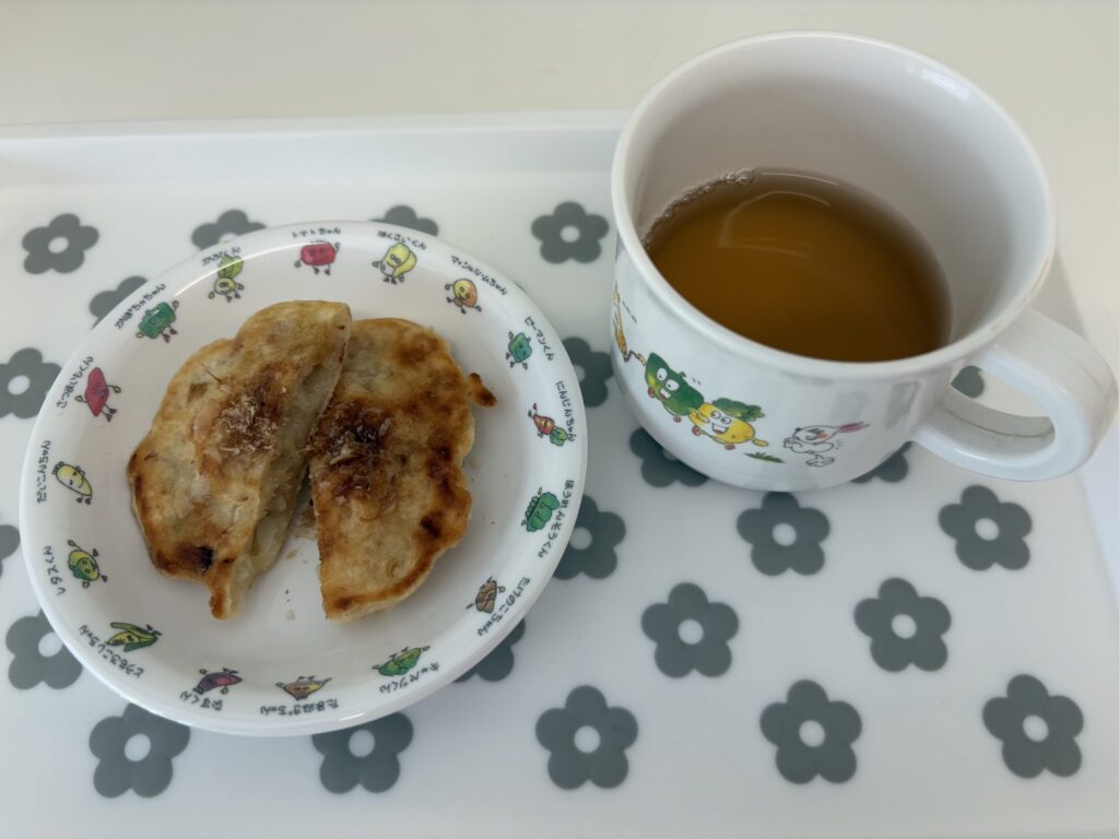 🍴野菜お好み焼き、麦茶