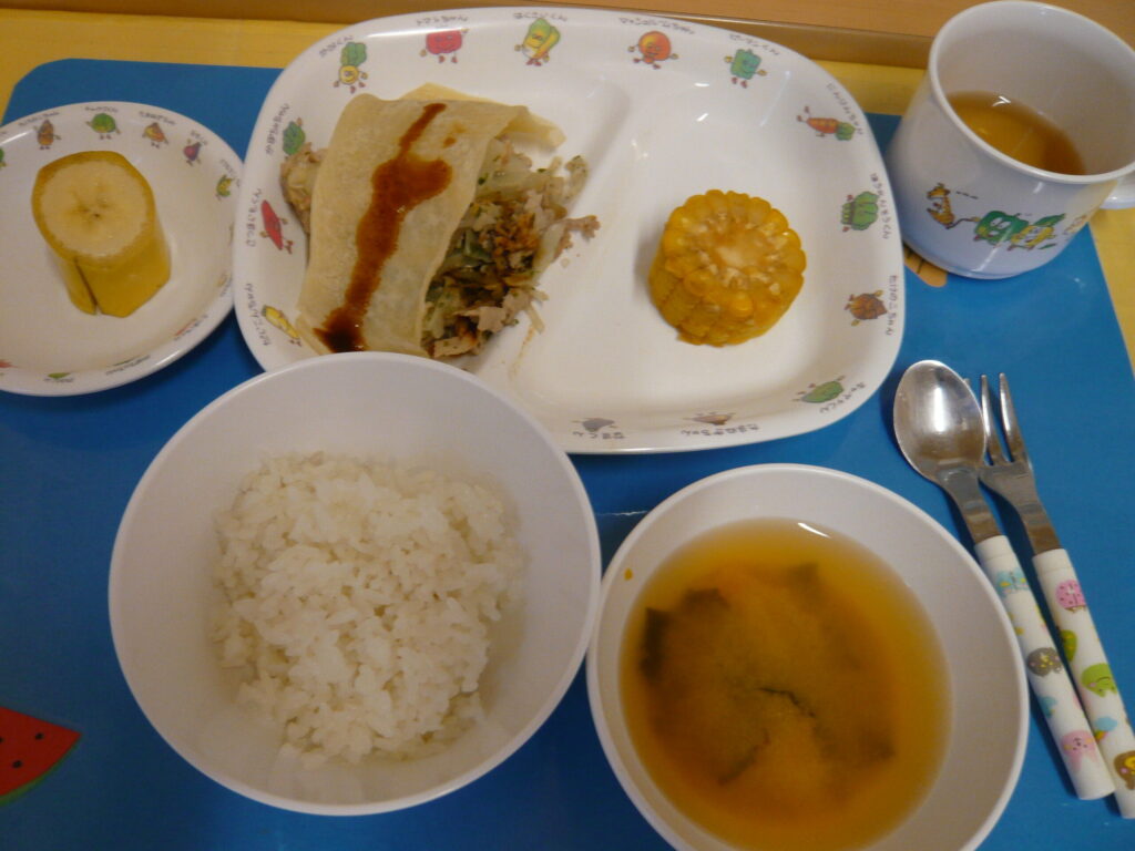 給食に出たとうもろこしは、調理前に子ども達が皮を剥くのに挑戦しました!