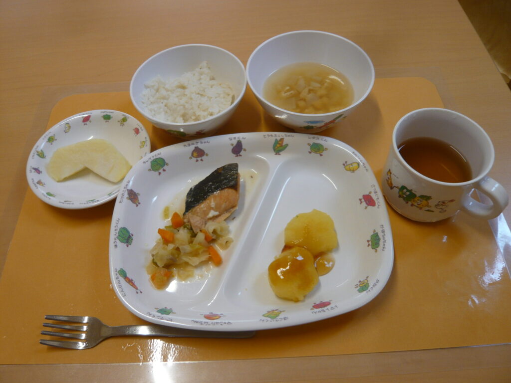今週の給食は、ご飯・鮭のちゃんちゃん焼き風