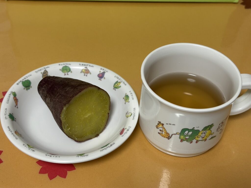 おやつは、北小金園の園庭で栽培したさつまいもで、