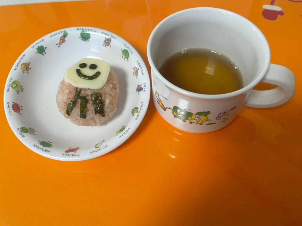 だるまおにぎり、麦茶