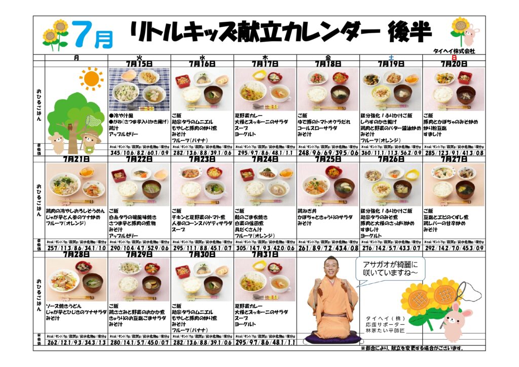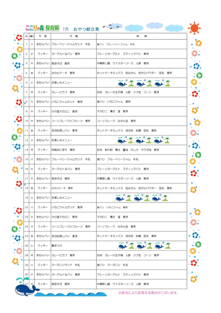 🎋7月の給食、午後おやつ献立表・食育便り🎋