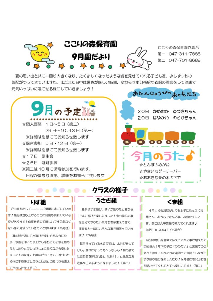 9月 園だより🌕