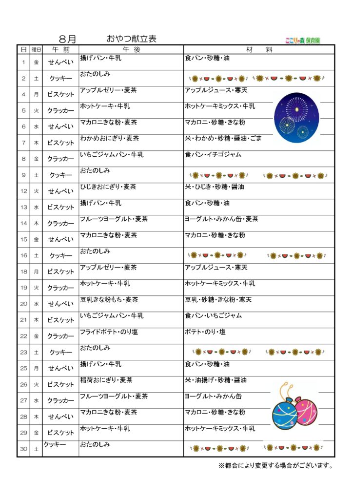 🍉8月の給食・おやつメニュー・食育だより🍉