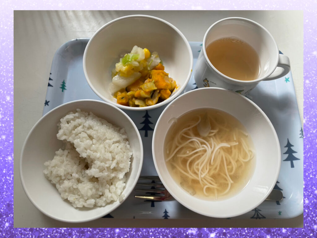 給食の中ににゅうめんが入っていて「ちゅるちゅるだ!」ととても大喜びでした!