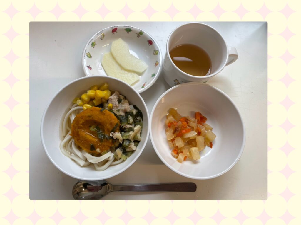 今日は十五夜ということで、給食はお月見うどんでした!