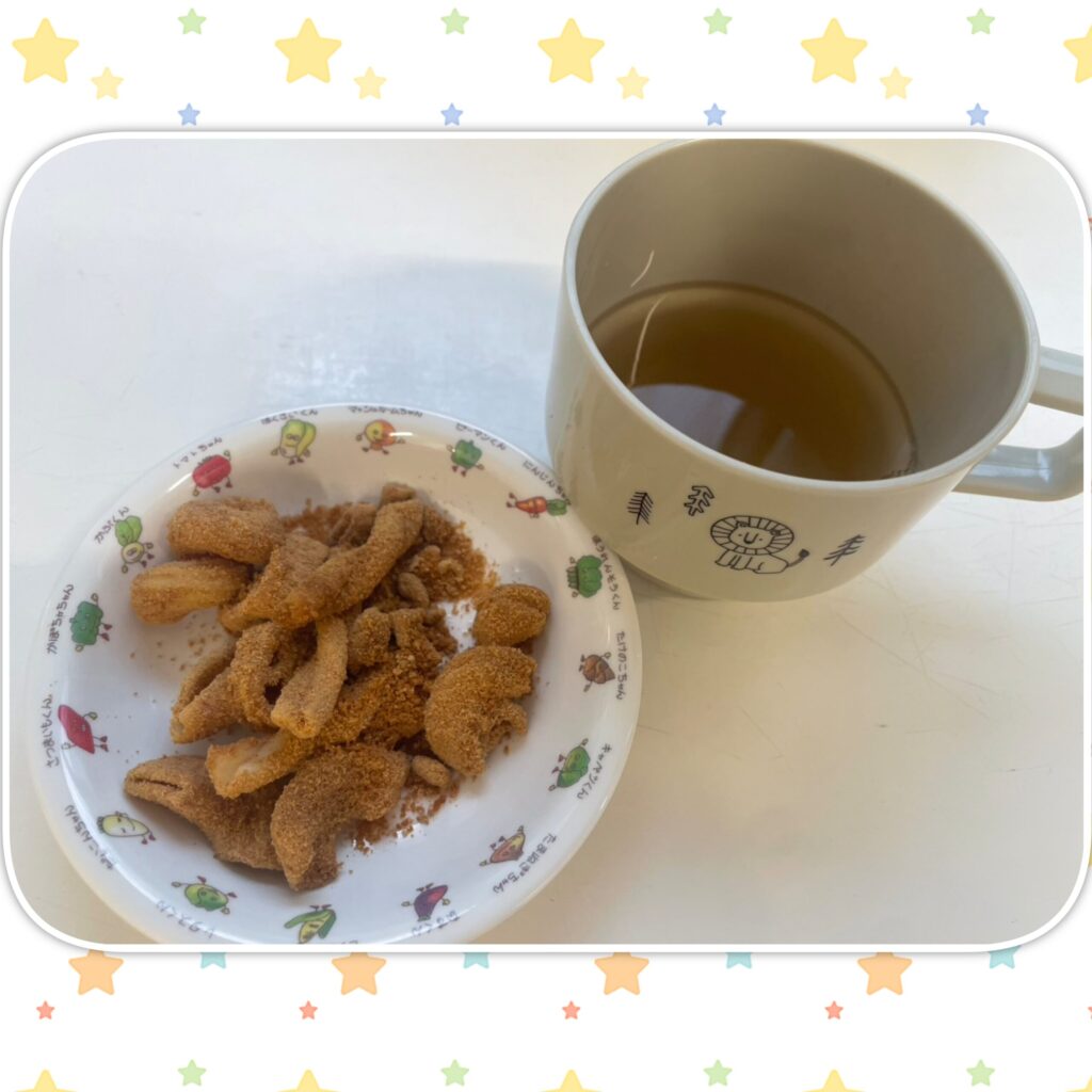 今週のおやつは子どもたちが大好きなマカロニきなこでした!ほんのり甘くて美味しいきなこに、牛乳なので子どもたちは「きなこだぁ!」や「牛乳!牛乳!」と大興奮でした😊