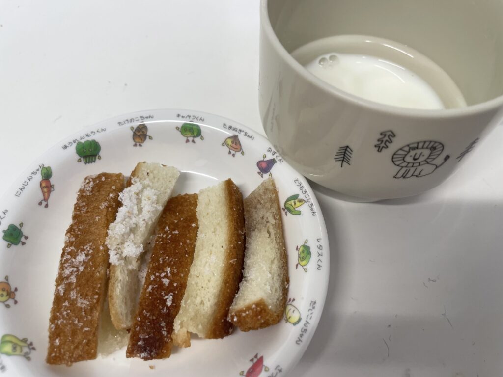 おやつの、パン耳ラスクは子どもたちに大人気のメニューです(^_-)-☆✨