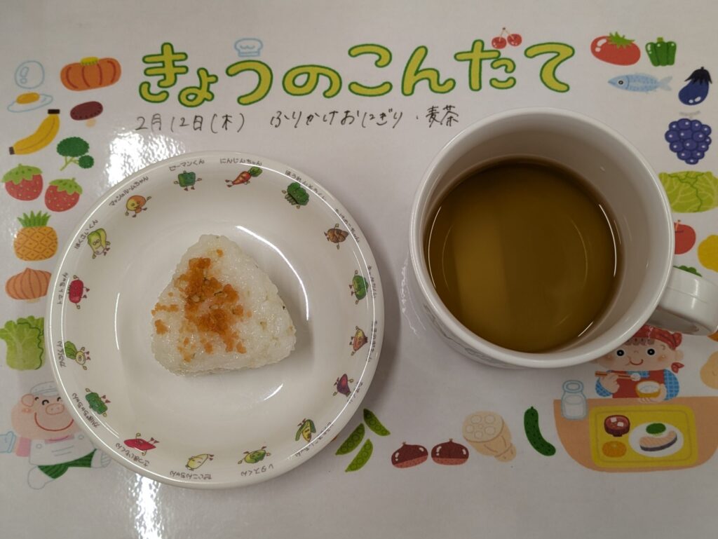 さんかくおにぎり🍙と喜んで食べていました!