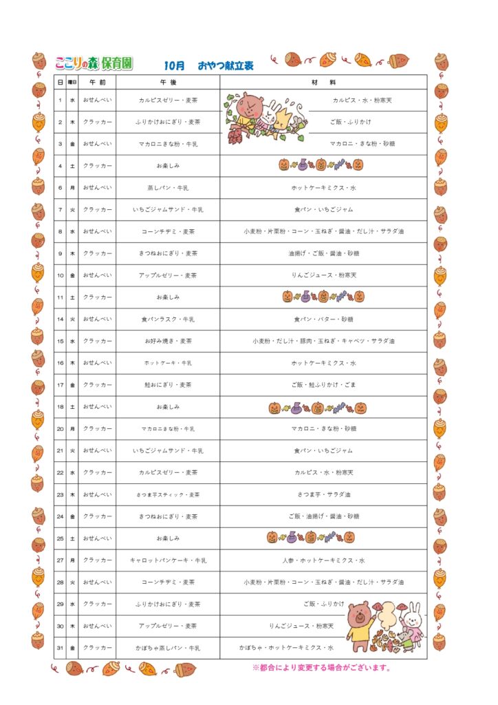 🌰10月給食献立🌰