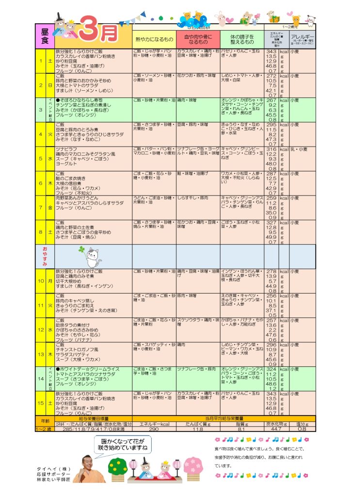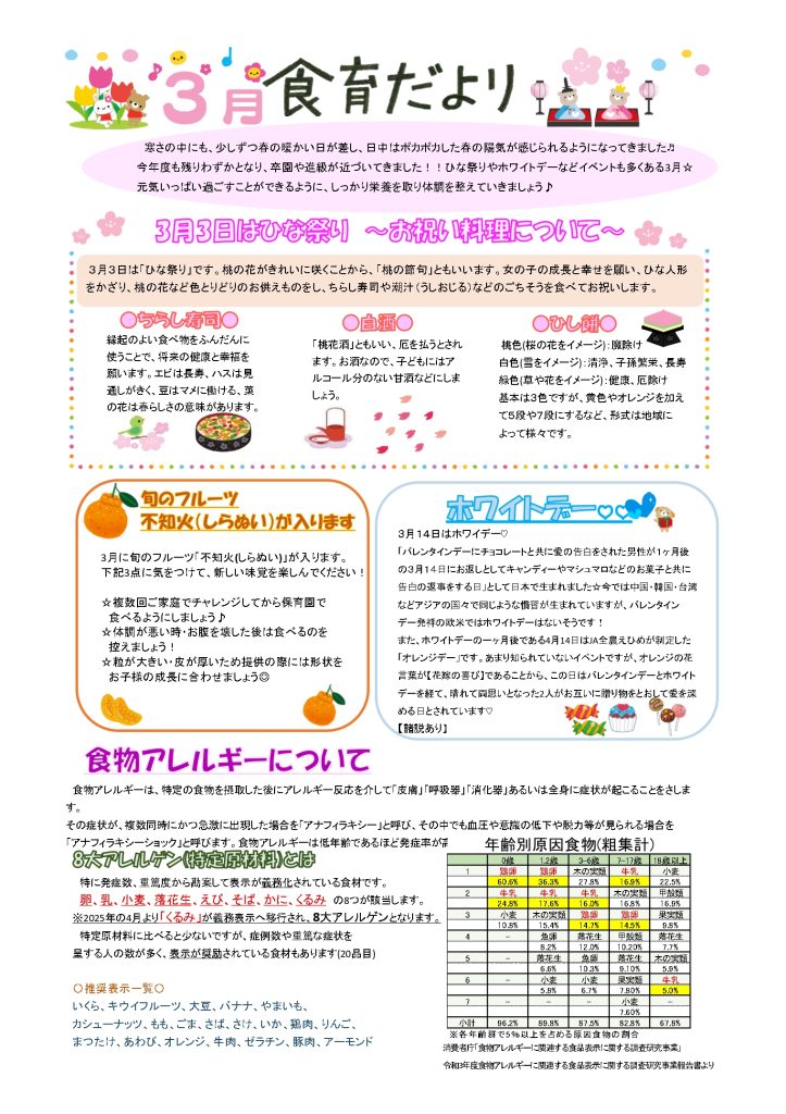 3月給食献立表・おやつ献立表・食育だより