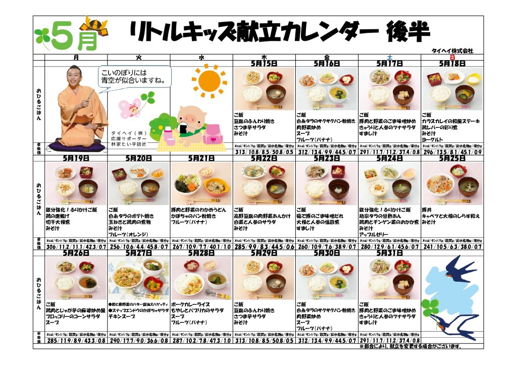 5月の給食献立😋