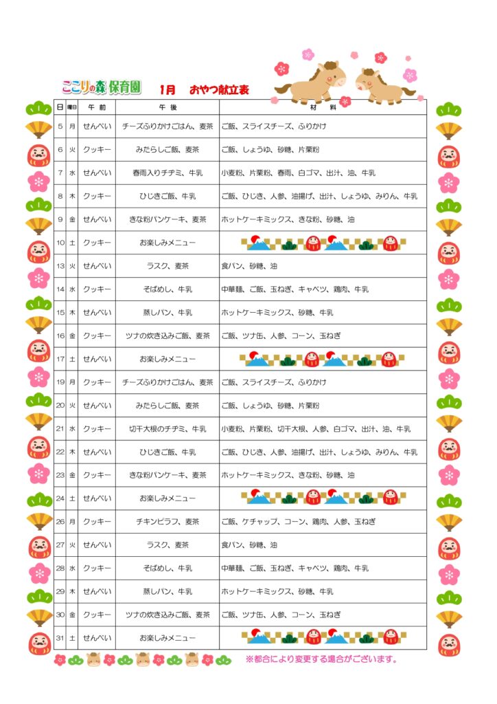 🎍1月の献立表